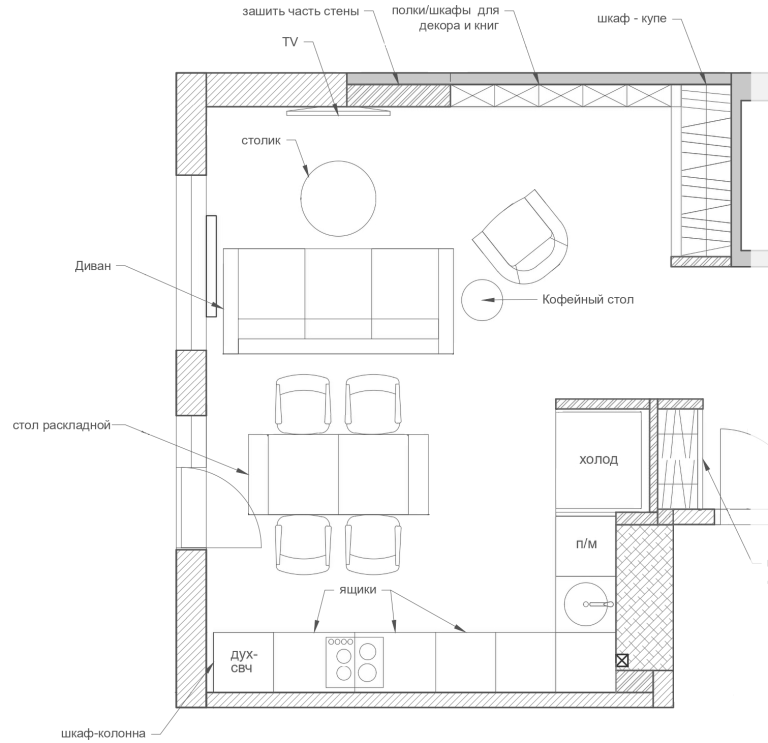 Дизайн гостиной с присоединением лоджии Цель: Создать просторную и комфортную гостиную за счет объединения с лоджией. Планировка: Демонтировать стену между...