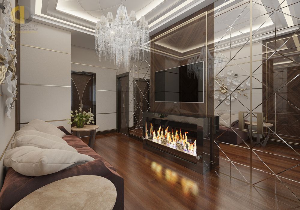 Учитывайте размер комнаты при выборе габаритов мебели и камина.