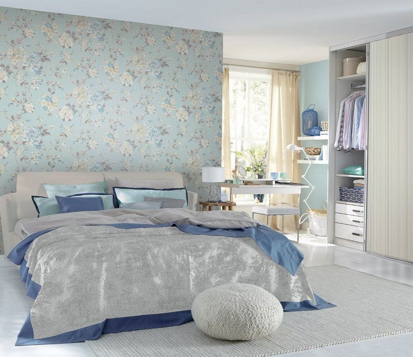 - Маленькая спальня: Светлые оттенки бежевого‚ серого‚ голубого или зеленого. Обои с мелким рисунком или однотонные.