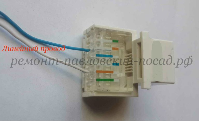 Цветовая маркировка телефонных проводов: Красный/Зеленый: Линия 1, внутренний проводник Желтый/Черный: Линия 1, внешний проводник Синий/Белый: Линия 2, внутренний проводник Оранжевый/Коричневый:...